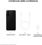 Package contents Data cable, Galaxy A26, Quick Start Guide, SIM eject tool